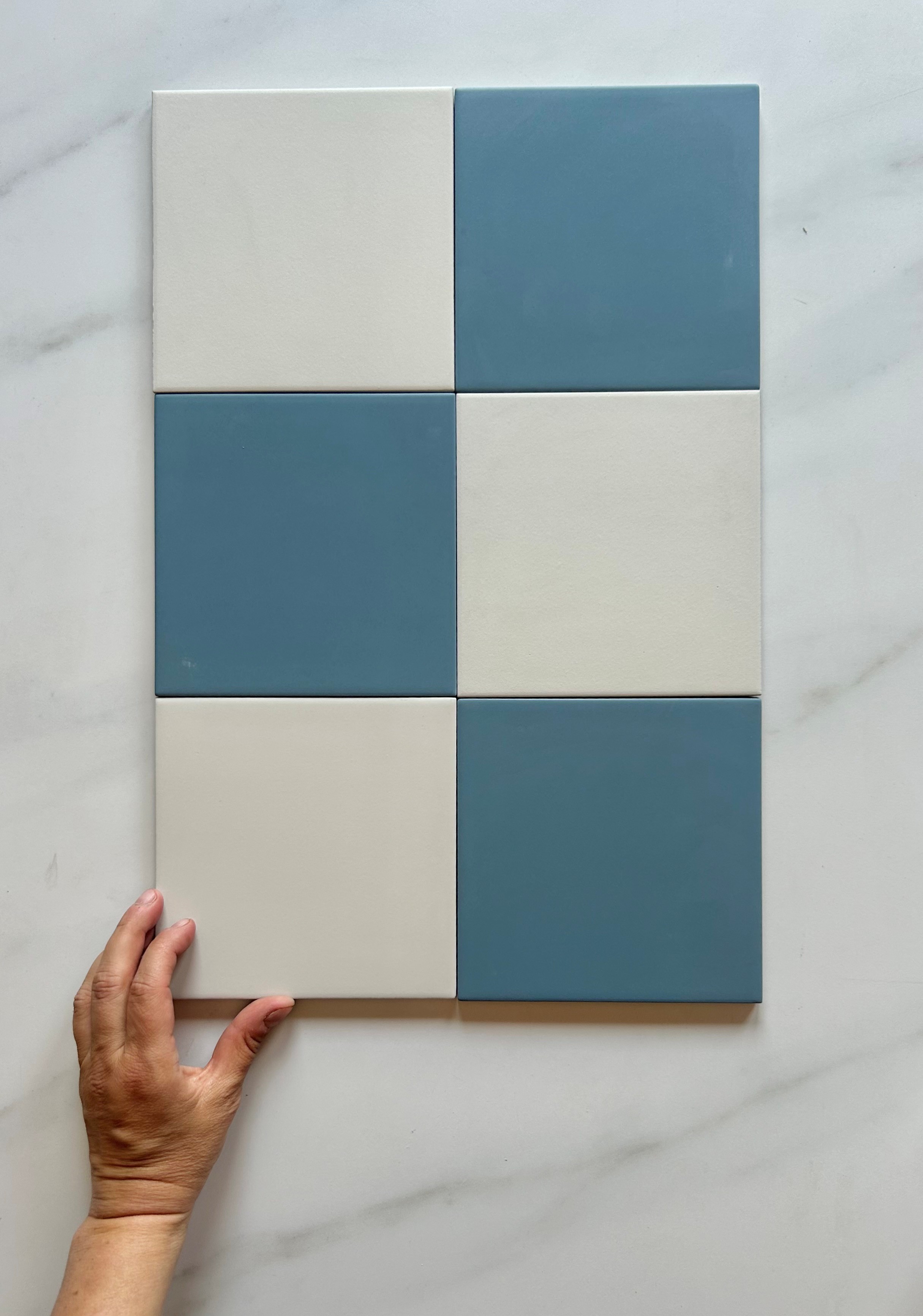 Detta är en klinker i storlek 15×15 som köps schackrutigt. Detta är en Blå och Vit.